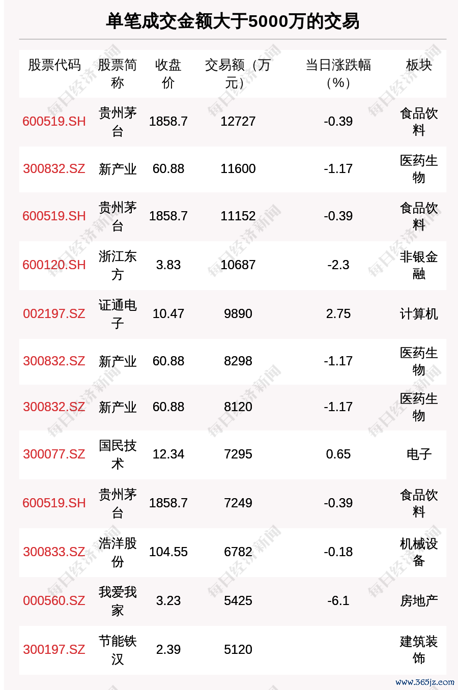 2023年9月5日,沪深两市一共发生127笔大宗交易,共成交19.3亿元,涉及74家上市公司。