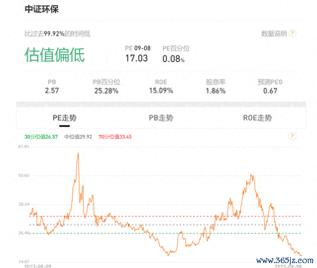 环保板块比过去10年里99.92%的时间估值都要低。