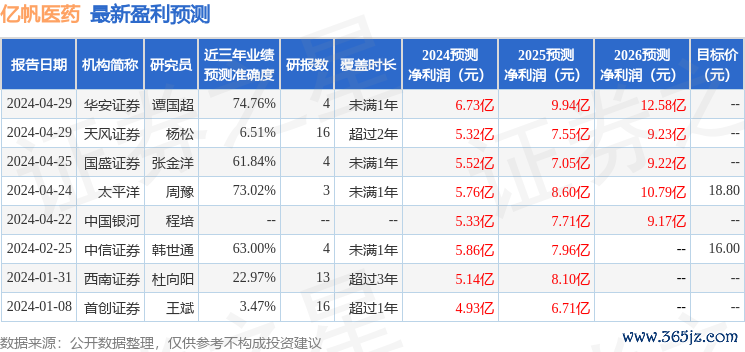 最新盈利预测明细如下: