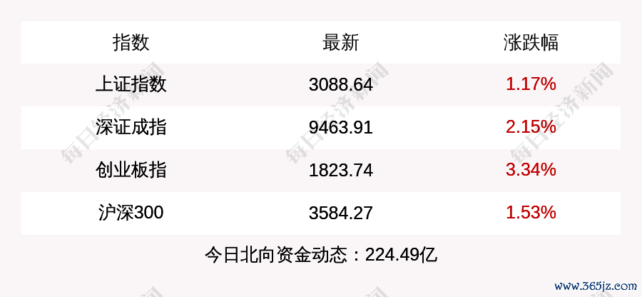 你的位置:正规炒股配资平台_配资炒股网_安全炒股配资门户 > 正规炒股配资平台 >配资炒股大全 上证指数收盘上涨1.17%, 创业板指上涨3.34%, 北上资金当日净流入224.49亿元